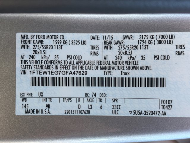 - VIN : 1FTEW1EG7GFA47629